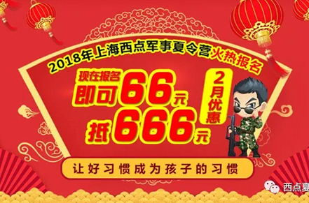 2018上海西点军事夏令营报名提前开启,一言不合就送礼,二月份报名即可享受,66抵666的超值优惠哦!